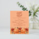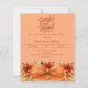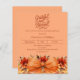 An atomic tangerine background colour. Decorated a large orange bow and fall flowers. Personalise and add the party details.