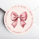 Bow Baby Shower Blush Pink & Red It's a Girl Classic Round Sticker