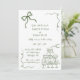 Whimsical wedding invitation featuring a hand-drawn champagne tower and a bow. Personalised with your names, and details.
