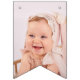 If you're celebrating your adorable little lucky charm's first birthday, these bunting flags make for the perfect decoration for a clover and horseshoe themed Lucky One first birthday party. Personalize with your daughter's initial and four photos from her first year. Her age is printed on four of the flags, inside a horseshoe decorated with four-leaf clovers. One another four flags, you'll have the text Lucky One with a pretty bow above the text.