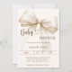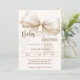 A soft ivory background, decorated with a large beige bow. Gender neutral. Personalize and add a name and party details.