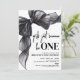 Girls Just Wanna Be ONE 1st birthday invitation with an elegant black and white look. This chic design features a playful watercolor bow in black, with a ribbon frame accenting the top and left side for a stylish yet cute touch. The phrase “Girls Just Wanna Be ONE” appears at the top in a mix of fun script and classic serif fonts, all in black, creating a bold and timeless statement.