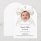 Bow Ivory Pearls Photo Girl Elegant Baptism Arch Invitation