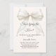 Bow ivory pearls tying the knot Bridal Shower Invitation