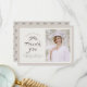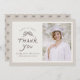 This double-sided graduation thank you card features a photo template on the front, accented by a simple coquette bow illustration and trendy handwritten text. Personalize the class year, graduate name, and school. The reverse side displays a 2nd photo, along with space for a custom note and signature. Matching bow pattern background. All background and border colors are fully editable, allowing you to easily match school colors or personal preferences. © Kimbellished, LLC