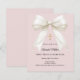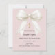 Bow pink ivory pearls First Communion invitation