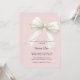 Celebrate the upcoming arrival of a little one with this elegant powder pink baby shower invitation featuring a beautiful decorative bow with delicate pearl details. The soft powder pink background creates a warm, feminine, and timeless look that is perfect for a stylish baby shower celebration.