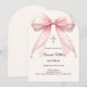 Bow Pink Ivory Pearls Girl Elegant Baptism Arch Invitation