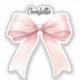 A large pink bow. Personalise and add a name. Black handwritten style script. To decorate your belongings