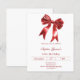 A white background, decorated with a large red bow. Personalise and add a name and party details.
