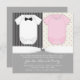 Adorable bow tie on pinstripe, and pink pearls on polka dots gender reveal shower invitations. This cute pink and black gender reveal shower invitation is easily customised for your event by adding your event details, font style, font size & colour, and wording.