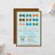 This trendy and cute Baby Shower invitation is ideal for a mum-to-be expecting a boy. It features several bow ties in different patterns and colours. Eye-catching design great for a fun event with a “Little Man” theme. Add your own wording.