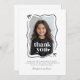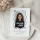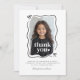 Thank guests for coming to your little one's Birthday with this design, featuring elegant black bows, a playful wavy border, and space to add your favourite photo, this sweet design is topped off with the word "thank you" and a little heart next to it.