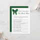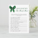 Celebrate love with this minimalist bridal shower game featuring the phrase she’s tying the knot in delicate emerald green script calligraphy. An elegant emerald bow illustration adds a graceful touch, symbolizing the moment she’s about to begin. The rest of the text is set in sleek, modern typography, creating a clean and sophisticated layout. With its fresh palette and understated charm, this invite is perfect for a chic celebration that blends elegance with heartfelt joy.