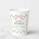 This baby shower paper cup card features a pastel pink and green flower vine with a pink bow, evoking a sense of classic charm. The message "Baby Shower" in traditional lettering ensures the announcement is eye-catching while maintaining an air of casual elegance. The card reflects a classic preppy yet contemporary feel, suitable for celebrating the mum-to-be with a timeless design.