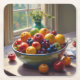 Bowl of fruit sitting on a table oil painting square paper coaster
