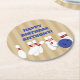 These paper coasters are perfect for bowling alley birthday parties. They feature an illustration of a blue bowling ball with white and red pins set against a tan bowling lane background. Your custom message appears in bold blue lettering.