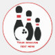 Bowling ball and pins sticker featuring a minimalist icon of three black bowling pins with red stripes, a ball and your text on white background with red border. This cool design is a template and it is completely customisable.
