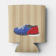 Create the perfect personalised gift for your favourite bowler. This can sleeve features a realistic style illustration of a blue bowling ball and bowling pins against a tan striped background. There's a spot on the front for adding a name in blue script lettering. The reverse side has a coordinating bowling shoe illustration.