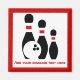 Bowling ball and pins custom magnet that features a minimalist icon of three black bowling pins with red stripes, a ball and your text on white background with red border. Personalise it and change text with monogram, name or your message. The perfect gift ideas for the fanatic bowler and the bowling lover.