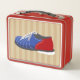 Create a personalised accessory that's perfect for your favourite bowler. This lunchbox is ready to be personalised with a name in blue script lettering and features illustrations of a bowling ball and bowling pins. The reverse side has a coordinating illustration a bowling shoe.
