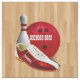Bowling Ball Shoe And Pin With Your Custom Name in red and white colours on wooden bowling alley floor. You can personalise it with your own name, team or your bowling name club