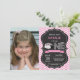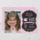 Bowling Birthday Invitation with custom photo. 1st Birthday Party. Girl Birthday Party Invite. Bowling Sport Themed Birthday Bash. Pink and White Chevron Chalkboard Background. 1st First Birthday. Printable Digital. For further customisation, please click the "Customise it" button and use our design tool to modify this template.