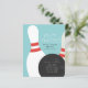A modern, gender neutral birthday party invitation featuring bowling ball and 2 bowling pins. Invite friends to celebrate and play a fun game of bowling to celebrate your child's birthday. Coordinating pattern backer can be removed to make room for additional party information like directions.