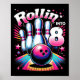 Bowling Birthday Rollin Into 8 Party 8th Birthday Poster