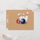 You can personalise all the text on this 60th bowling themed birthday party invitation. You can change the text and number on the front and use this for a 40th, 50th, 70th or other birthday. The design features a bowling ball with pins and the ball made to look like zero in 60 on the front. Tan and red colours that can also be changed to your preferred colours.
