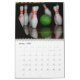 A calendar that features photos of bowling pins.