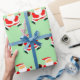 Fun bowling holiday gift wrap for your favourite bowler featuring cartoon Santa Christmas bowling.