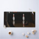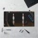 A desk mat featuring a photo of a bowling pins and a bowling ball.