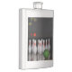 A flask featuring a photo of a bowling ball about to hit a rack of bowling pins.