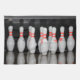 A towel featuring a photo of bowling pins.