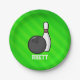 Cool, colourful kid's bowling ball, bowler, red and white bowling pin, sports design on bright neon lime green stripes pattern. Perfect gift for baby, toddler, kids, children, teens, or adults! Personalised the design by adding a child's name or custom text with athletic, sporty look sports white font. Visit our store, Birthday Party House, for more great customisable boy and girl products!