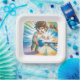 A cute anime boy's bowling themed Birthday paper plates. Colours used are orange, blue and green.