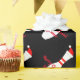 Bowling pin with Santa hat custom Christmas Wrapping Paper. Funny Holiday design gift wrap rolls for bowlers. Personalise with your own greeting and name. Black or custom colour.