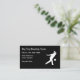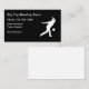 Bowling team captain sports business cards designed with a bowler in action pose throwing a bowling ball and simple template layout you can customize online. Promote your bowling team or recruit players.