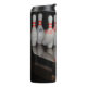 A thermal tumbler featuring a photo of a bowling ball crashing into a rack of bowling pins.