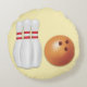 Images of bowling balls and pins on both sides on a cream background. You can customise to your own ideas and colours. diy