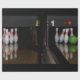 Wrapping paper featuring a photo of bowling pins and a bowling ball.