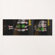 A yoga mat featuring photos of bowling pins and bowling balls.
