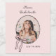 This trendy design features a coquette aesthetic pink bow and your bride's photo. Customise with the bride's name, photo, and the date or location. Perfect decor for your event to add some fun and flair.