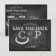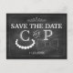 Bowties and Pearls wedding design was created by Aubergine and Purple. This modern design includes a string of pearls, a bow tie and fun white typography in the popular chalkboard style.