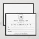 Coordinates with the BOX LOGO with YOUR INITIAL/MONOGRAM Black/White Business Card Template by 1201AM. A modern & classic logo treatment of your initial in a simple open box on a sophisticated bordered black and white gift certificate template. © 1201AM CREATIVE