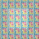 This fabric has a mid-century modern design of rounded rectangles, some of which are attached and some of which have starbursts, in retro colours of red, gold, green, and turquoise. If you like the design but prefer different colours, message me.