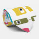 This necktie has a mid-century modern design of rounded rectangles, some of which are attached and some of which have starbursts, in retro colours of red, gold, green, and turquoise. If you like the design but prefer different colours, message me.
