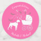 Include the big brother or sister fur baby in the celebration with this adorable Boxer dog baby shower design! Perfect for a puppy lover with a baby on the way. The pink makes it perfect for a girl baby shower! The Boxer is next to an adorable vintage carriage.