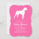 Include the big brother or sister fur baby in the celebration with this adorable Boxer dog baby shower design! Perfect for a puppy lover with a baby on the way. The Boxer is next to an adorable vintage carriage. The pink makes it perfect for a baby girl on the way!